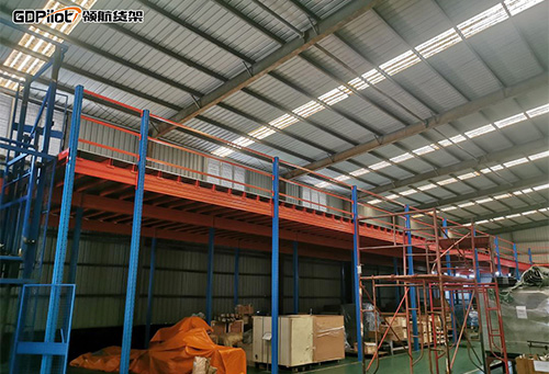 閣樓貨架快安裝完成了,安裝師傅在做收尾工作。4.5米高的閣樓貨架,自動液壓升降機平臺肯定少不了,使貨物上下搬運更加方便快捷。閣樓平臺每平方需要承重800公斤的重量,會用到什么材料?